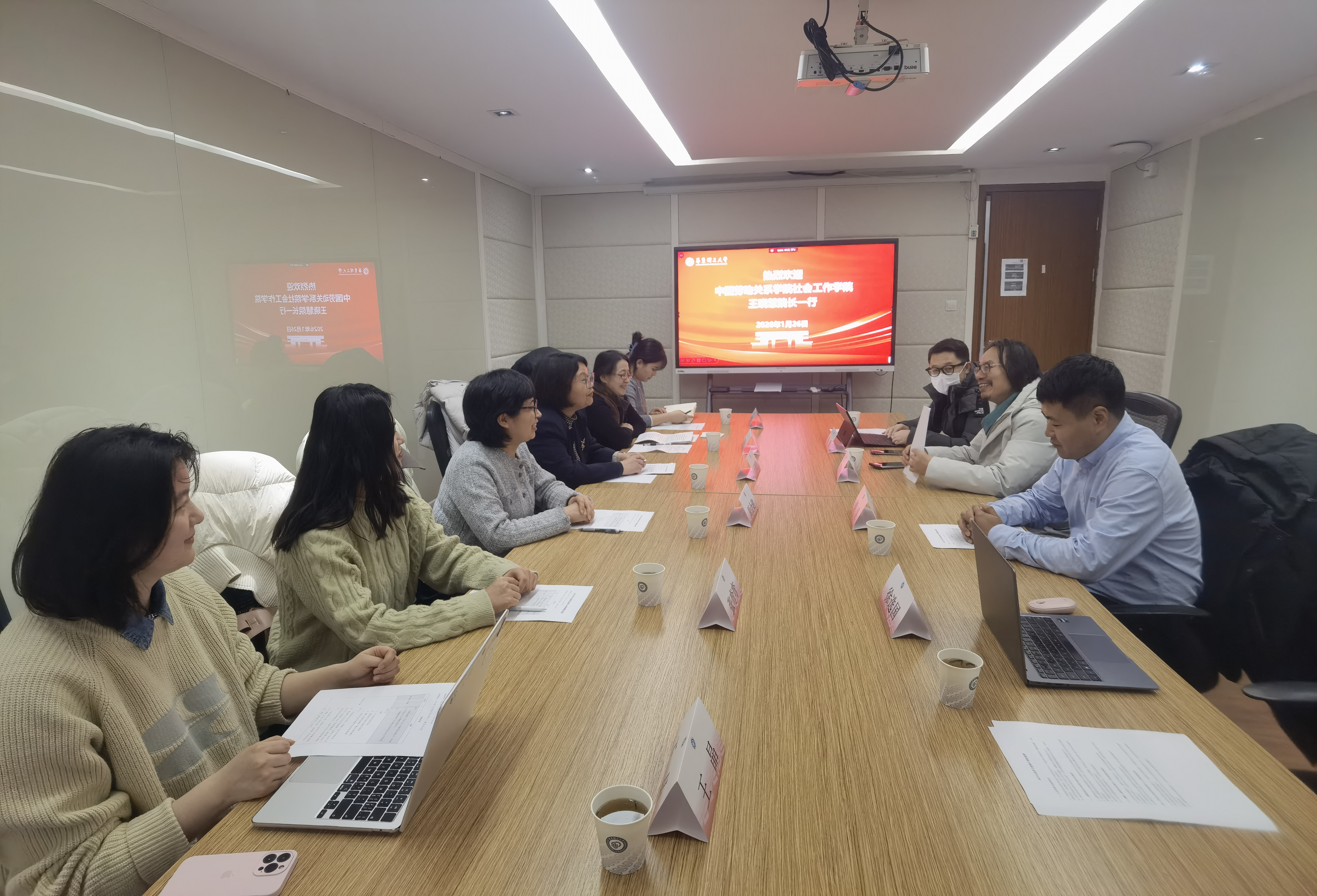 1月26日下午,中国劳动关系学院社会工作学院院长王晓慧带队,社会工作系主任孟宪红、原会建副教授、张骁健老师、张弯弯老师,以及MSW学生王晶一行到华东理工大学社会与公共管理学院交流社会工作、社会学人才培养经验。社会与公共管理学院院长何雪松教授、MSW教育中心主任梁昆副教授、社会工作系主任黄锐副教授、社会学系主任徐选国教授参与了交流座谈。
